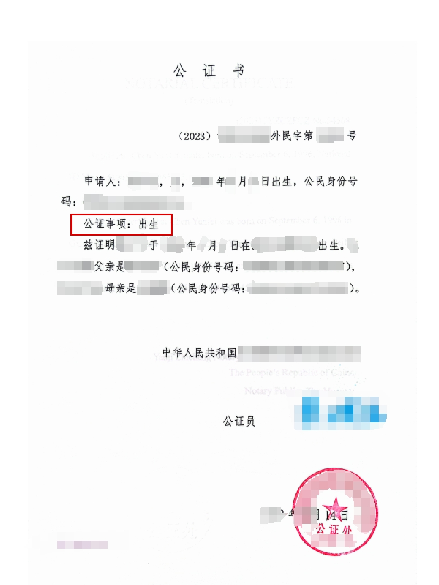 - 外文需求:目的国非中文使用国家,需提供公证书外文翻译件(翻译机构盖资质章,注明父母及申请人信息翻译一致性)。